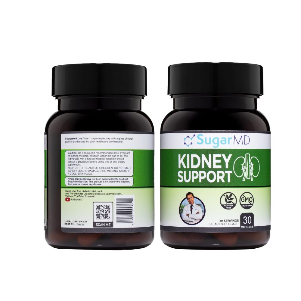 SugarMD Kidney Support is a natural supplement crafted to help support healthy kidney function, detoxification, and metabolic balance. This formula combines traditional herbal ingredients and nutrients that promote kidney wellness, help maintain proper fluid balance, and support the body’s natural cleansing processes. Designed for daily use, it is ideal for adults looking to maintain kidney health and overall metabolic function as part of a balanced lifestyle.